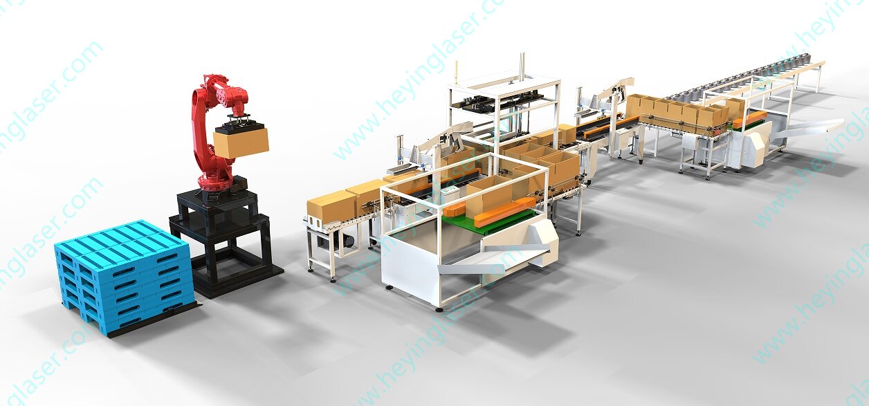 碼垛機器人說明 最大負載:10kg/20kg/50kg/100kg可選 軸數:6軸機器人 臂展:3500mm 防護等級:IP54,防塵防水 重復定位精度:±0.2mm 電源容量:24.3KVA 本體重量:≤1350kg 主要應用:單調、頻繁、重復性的長時間工作和作業場景 適合:上下料、搬運、碼垛等場景 特別適合應用:惡劣工作環境下的頻繁體力勞動